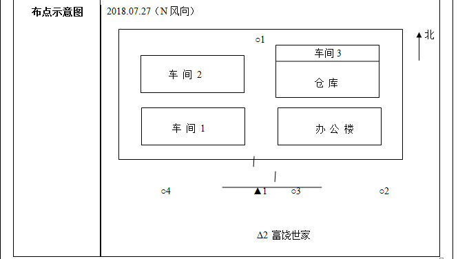 监控点的布设、样品的采集、监测结果的计算,严格按照《固定污染源排气中颗粒物测定与气态污染物采样方法》(GB/T 16157-1996)和《固定污染源废气监测技术规范》(HJ/T 397-2007)的技术要求进行。 2. 无组织污染源监测 2.1 监测因子、点位和频次 本项目无组织废气监测因子为VOCs,监测点位和频次见表5-3,监测布点图见图5-1。 表5-3 无组织废气监测内容
