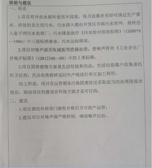 | 环评报告表审批部门 | 烟台市开发区环境保护局 | 环评报告表编制单位 | 烟台市环境保护科学研究所 | ||||||||||||||||||||||||||||||||||||||||||||||
